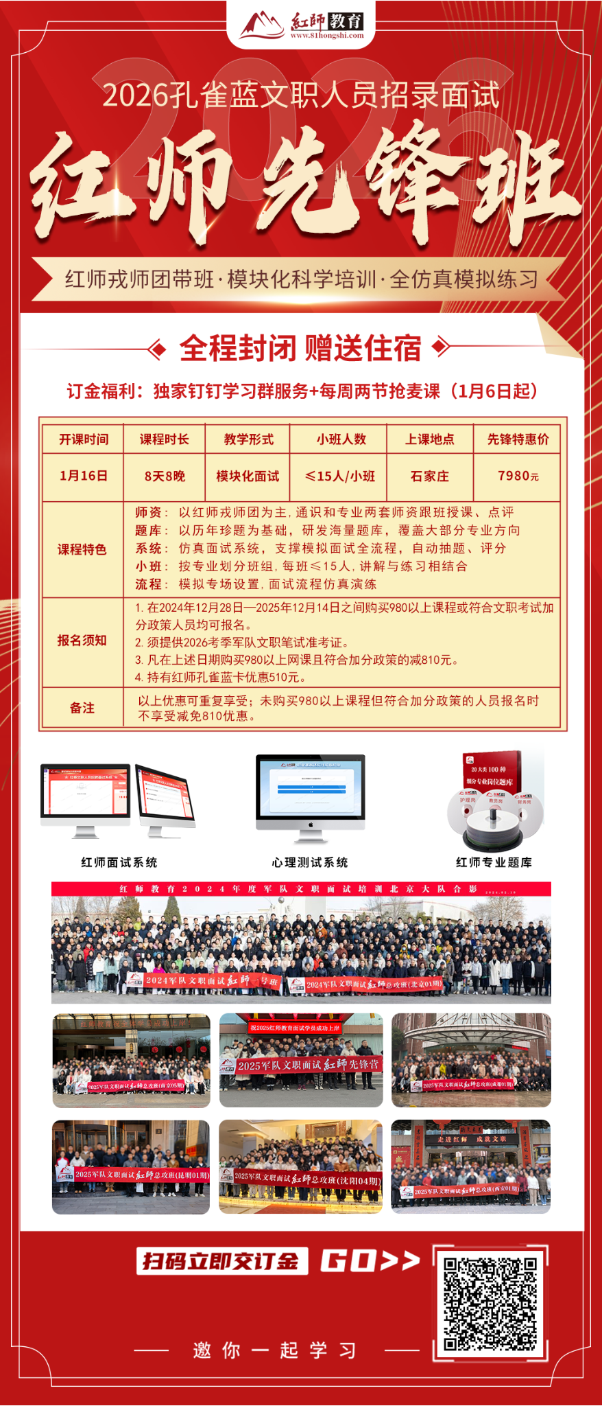 紅師教育2026 軍隊(duì)文職面試先鋒班,1 月 16 日石家莊開課,8 天 8 晚封閉集訓(xùn)(贈(zèng)住宿)。