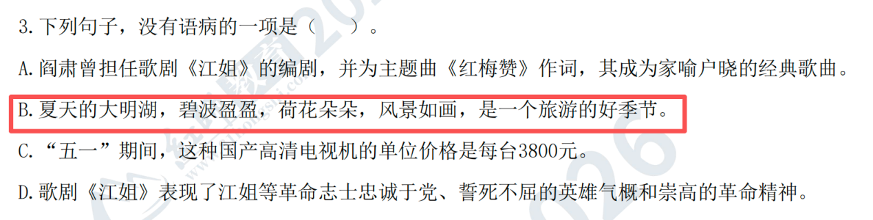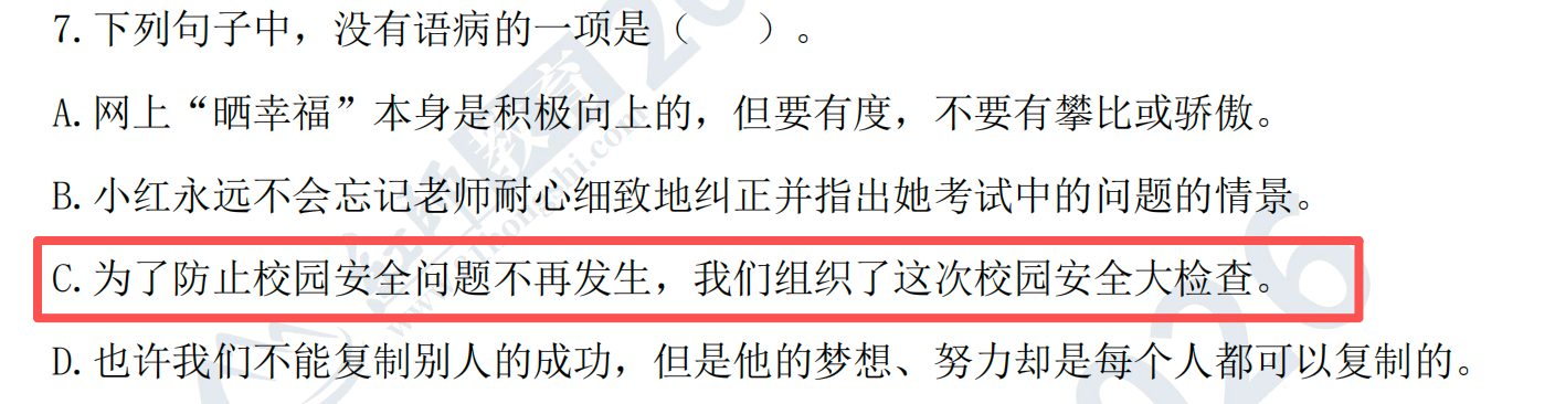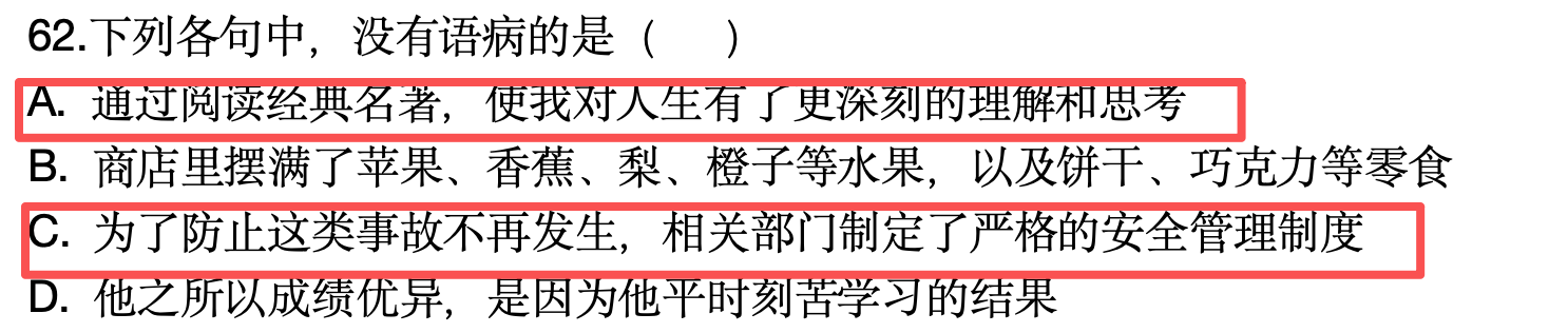 原題:62. 下列句子沒有語病的是( )。