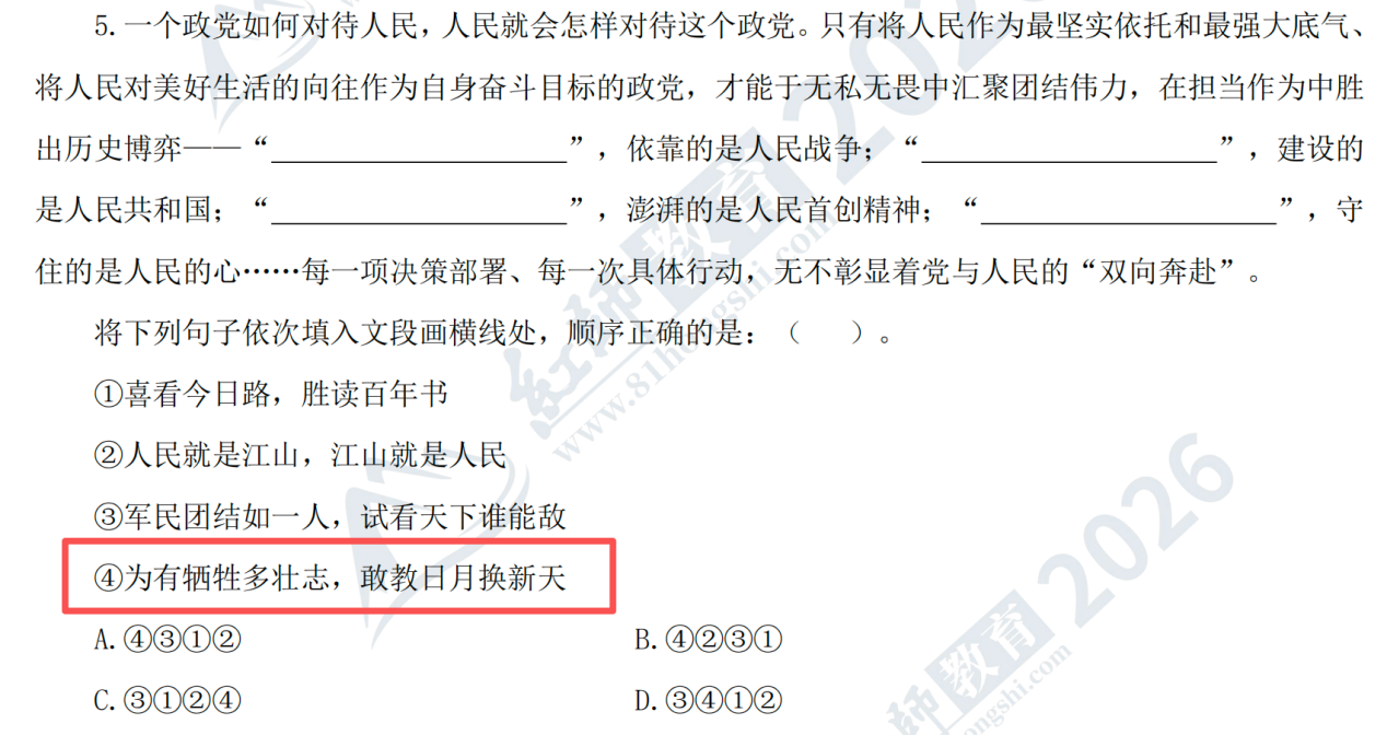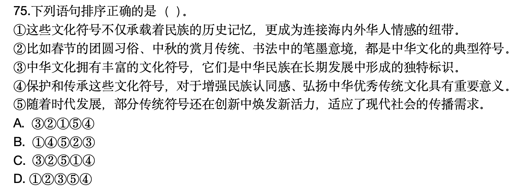 原題:64.下列語句排序正確的是( )。