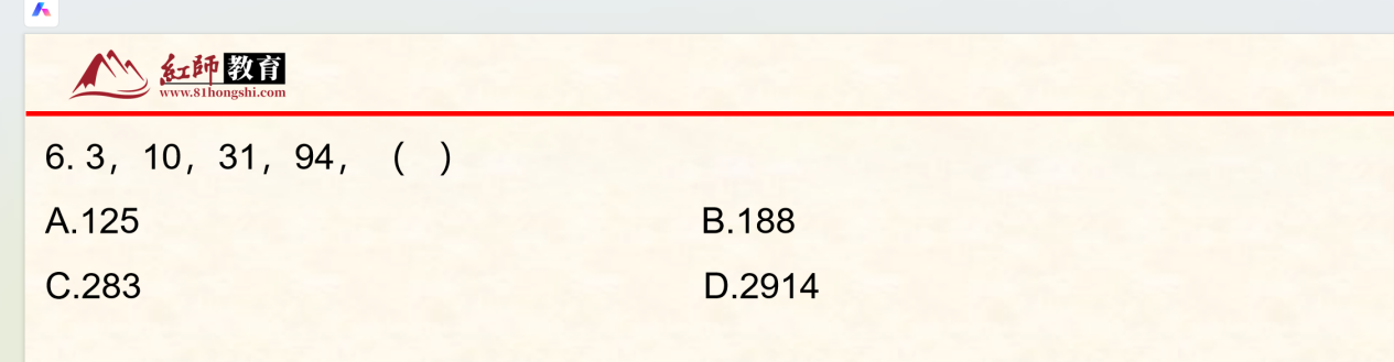 2026年紅師行動 (二)看變化幅度第6題(都是×3+1的規(guī)律)