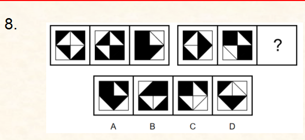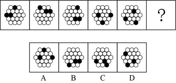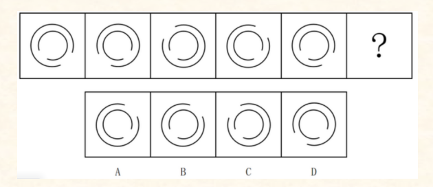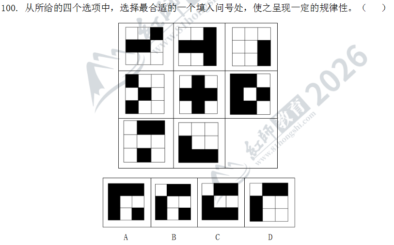 100.選擇一個圖形填入問號處,使之呈現(xiàn)一定的規(guī)律性。最合適的是()