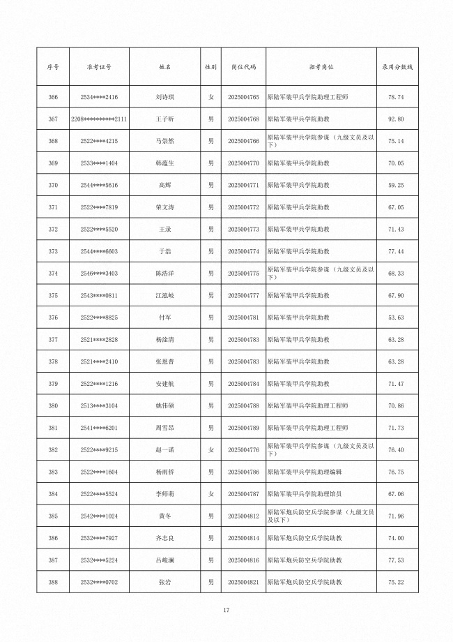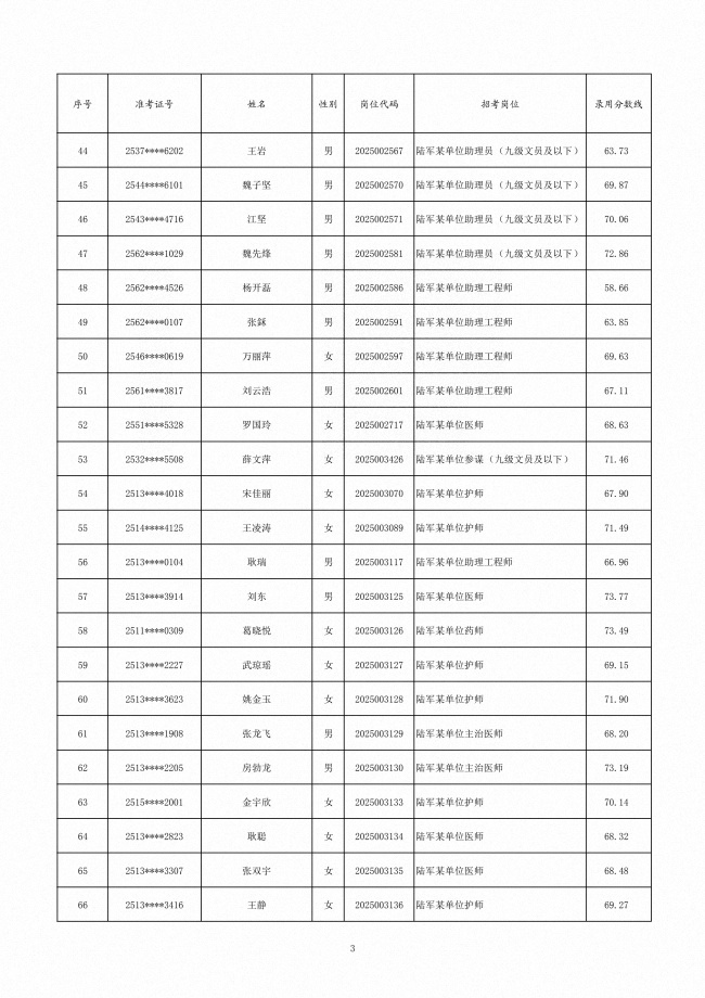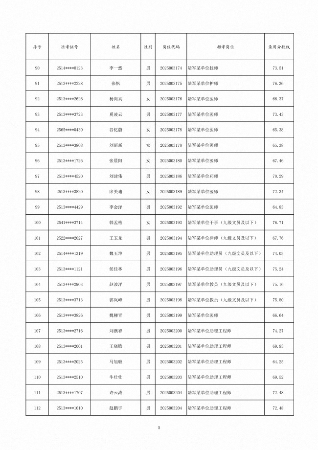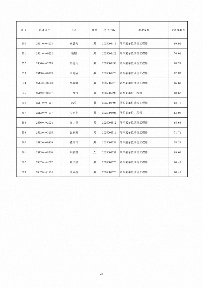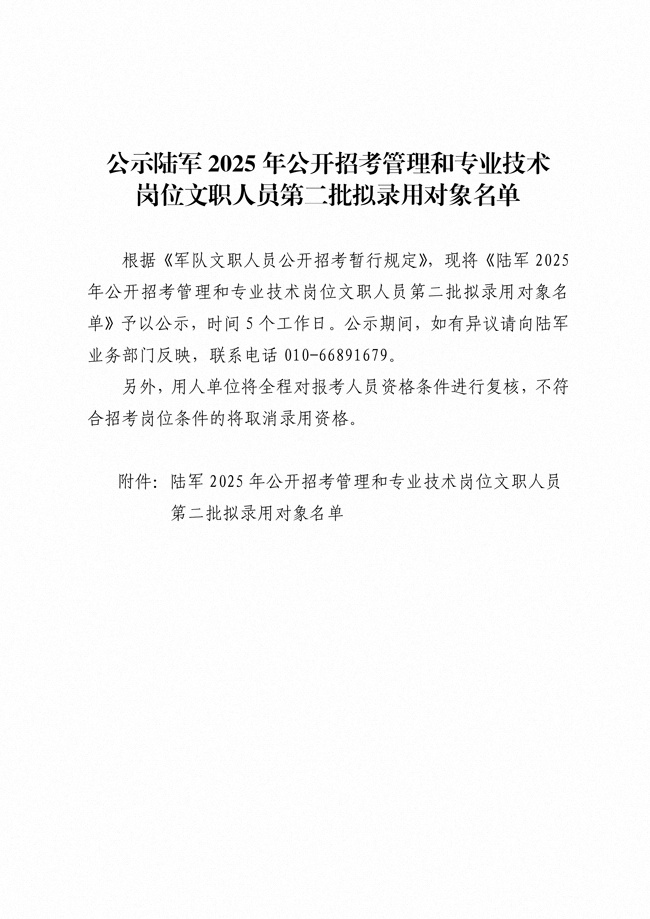 原文標(biāo)題:公示陸軍2025年公開招考管理和專業(yè)技術(shù)崗位文職人員第二批擬錄用對(duì)象名單