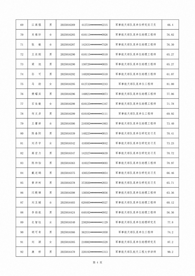 原文標題:公示軍事航天部隊2025年文職人員公開招考第三批擬錄用對象名單
