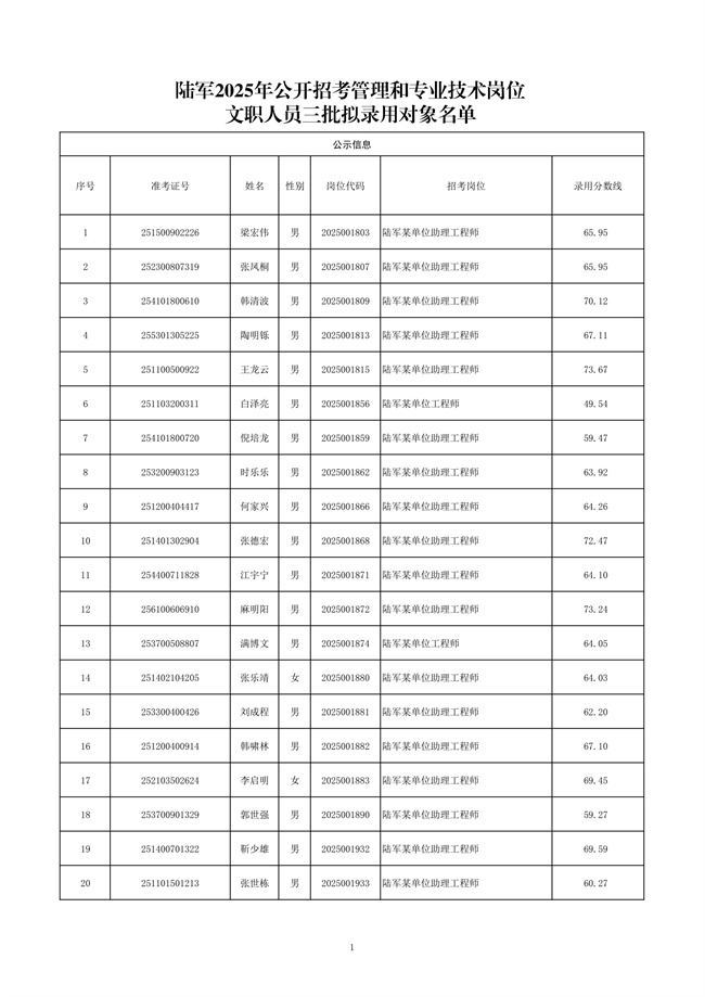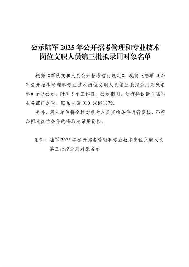 原文標題:公示陸軍2025年公開招考管理和專業(yè)技術崗位文職人員第三批擬錄用對象名單