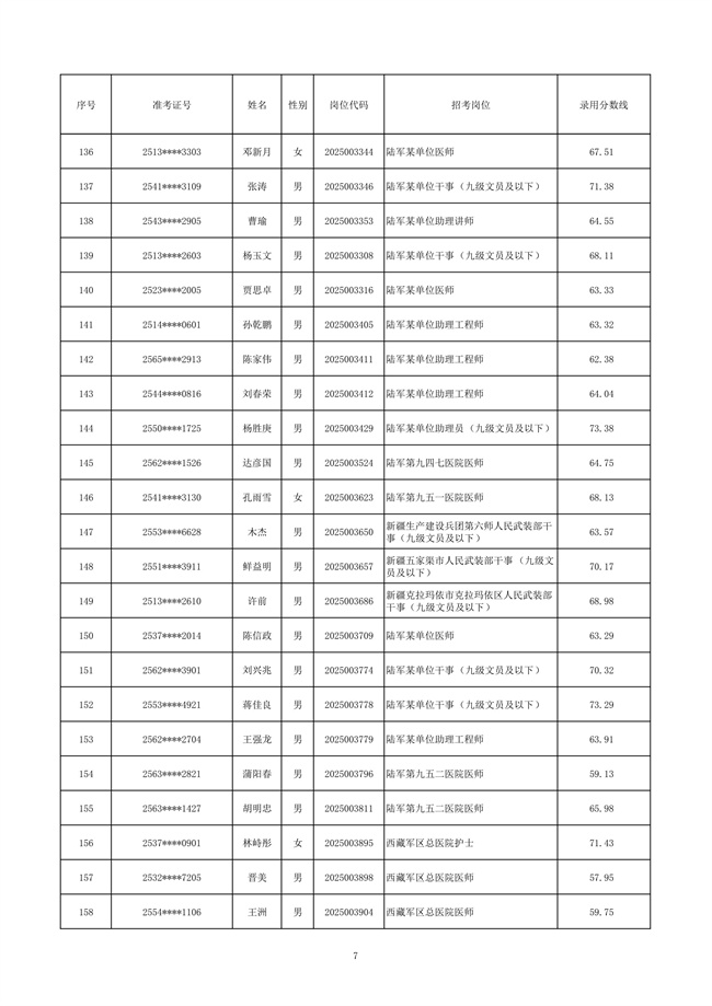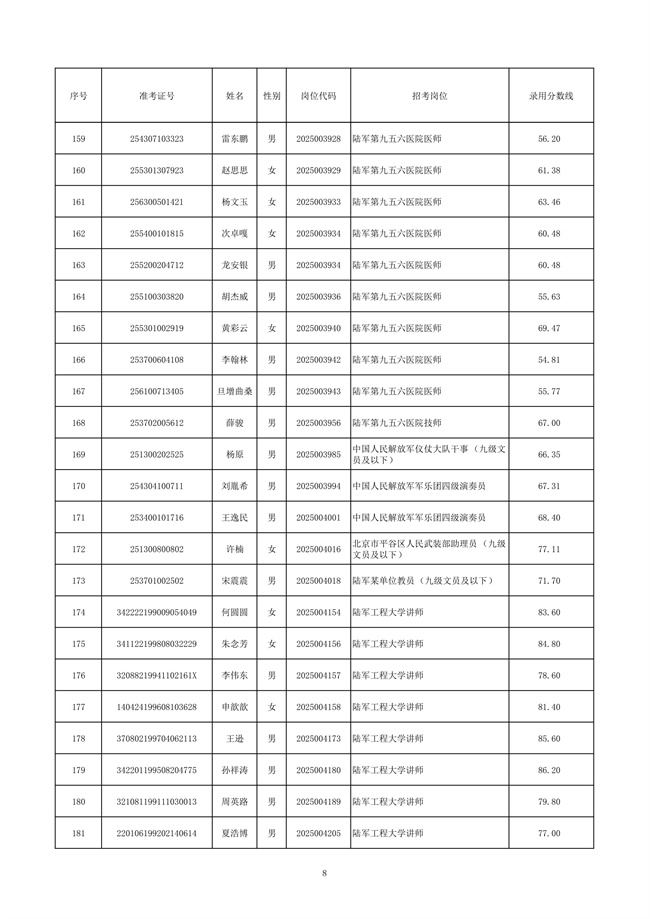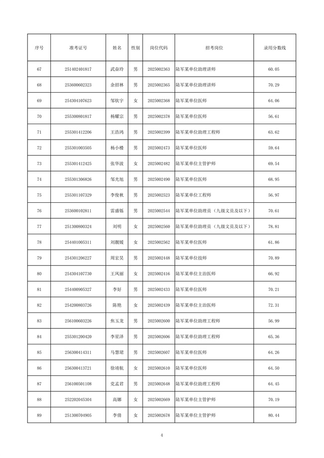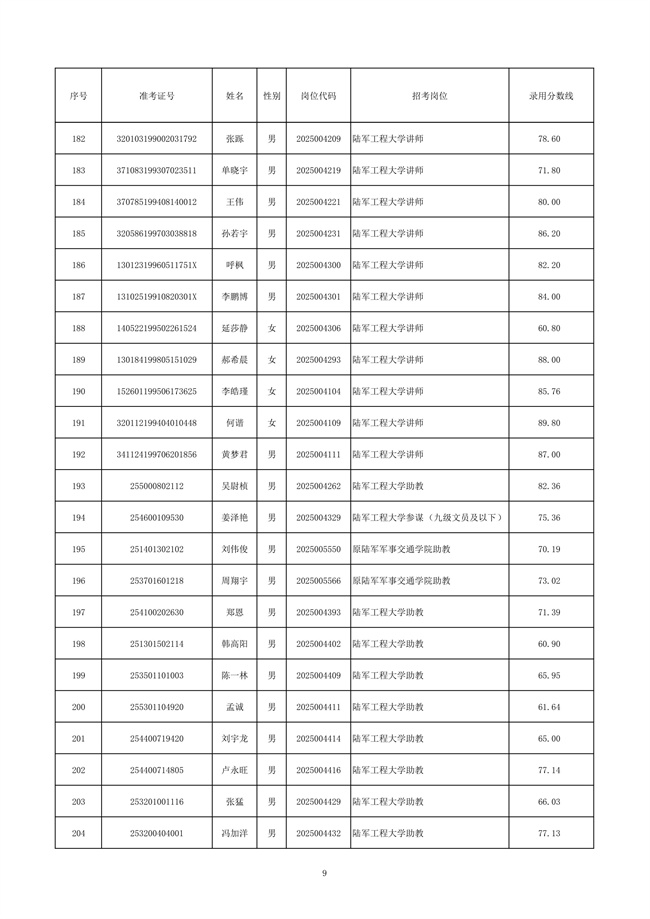 2025年武裝部文職人員擬錄用名單(含上岸分數(shù)線) 2025-10-09