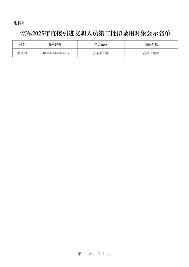 原文標(biāo)題:公示2025年空軍文職人員公開招考第三批、直接引進(jìn)第二批擬錄用對(duì)象名單