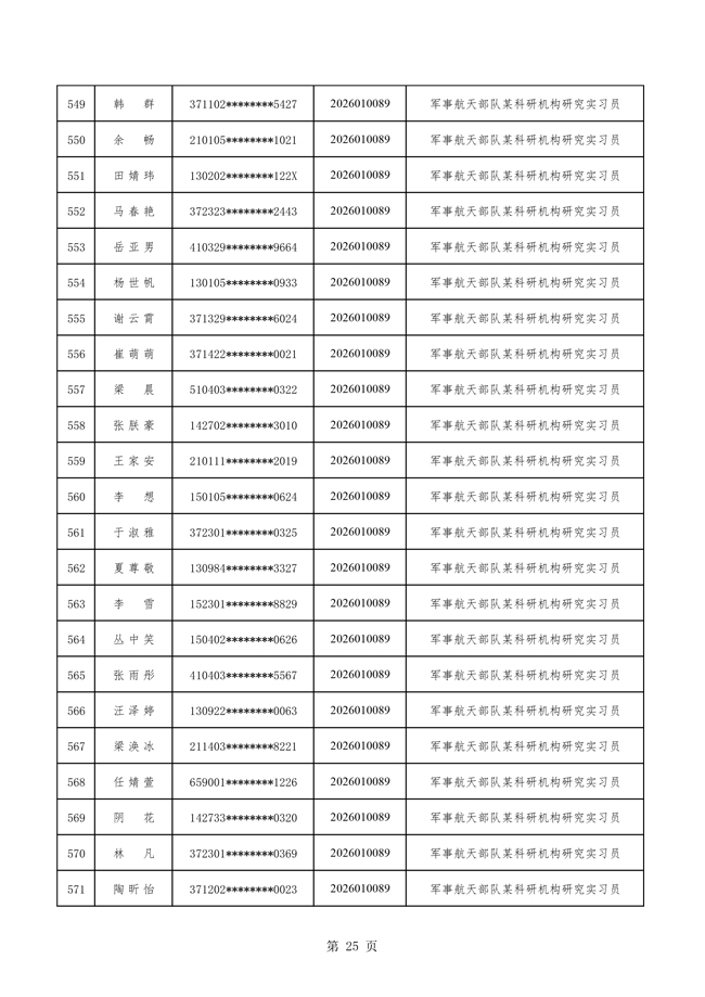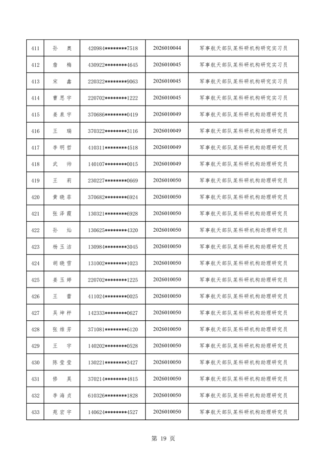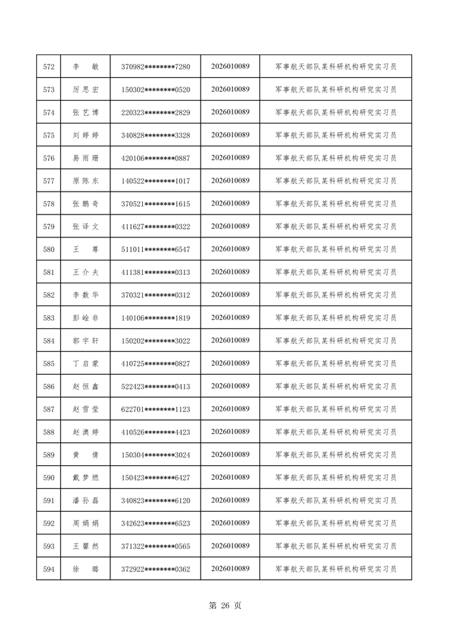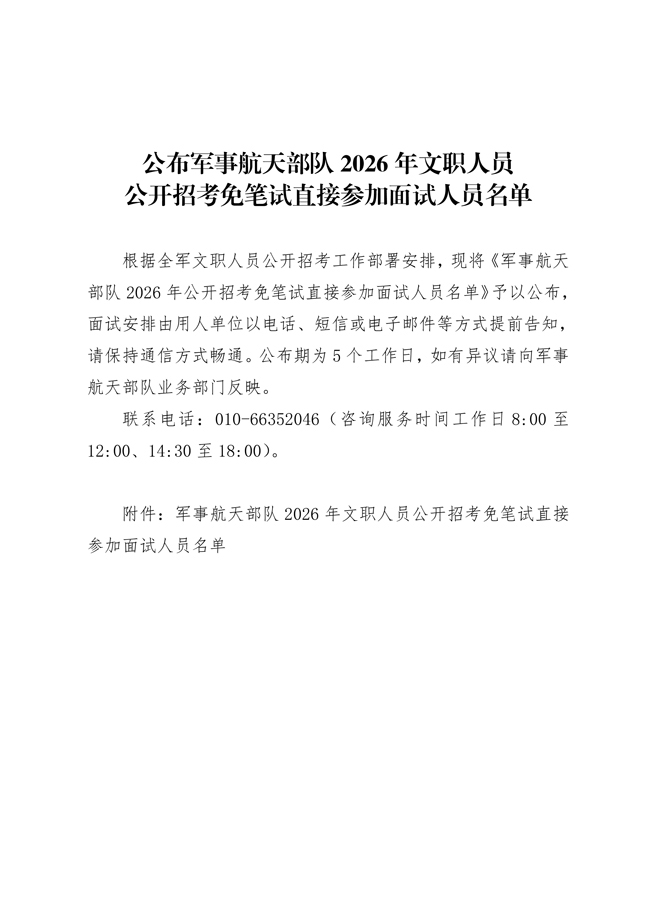 原文標(biāo)題:公布軍事航天部隊(duì)2026年文職人員 公開(kāi)招考免筆試直接參加面試人員名單