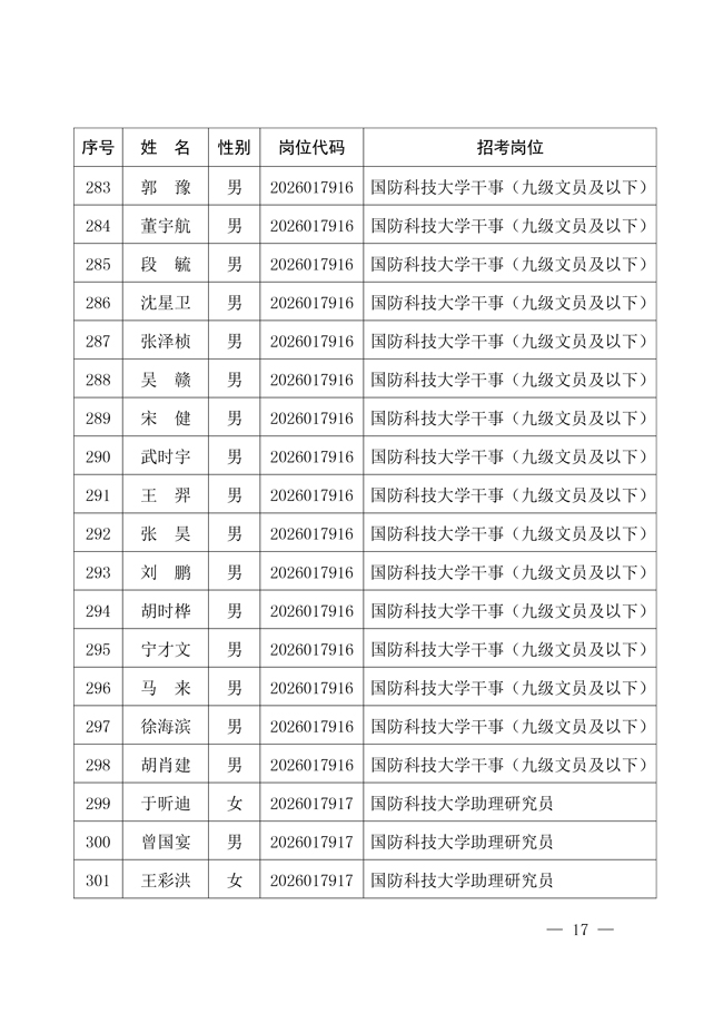 原文標題:公示國防科技大學(xué)2026年軍隊文職人員公開招考免筆試直接面試人員名單