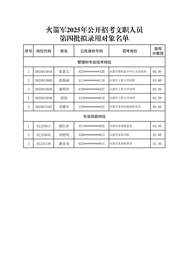 原文標(biāo)題:2025年火箭軍公開(kāi)招考文職人員第四批擬錄用對(duì)象8人