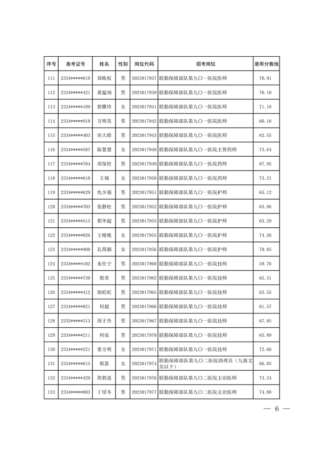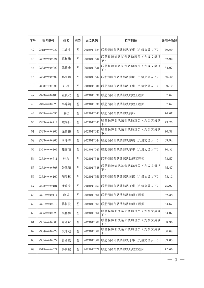 2023年聯(lián)勤保障部隊軍隊文職第一批擬錄用1040人名單公示