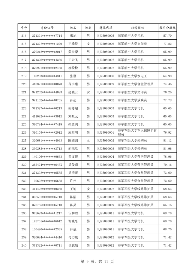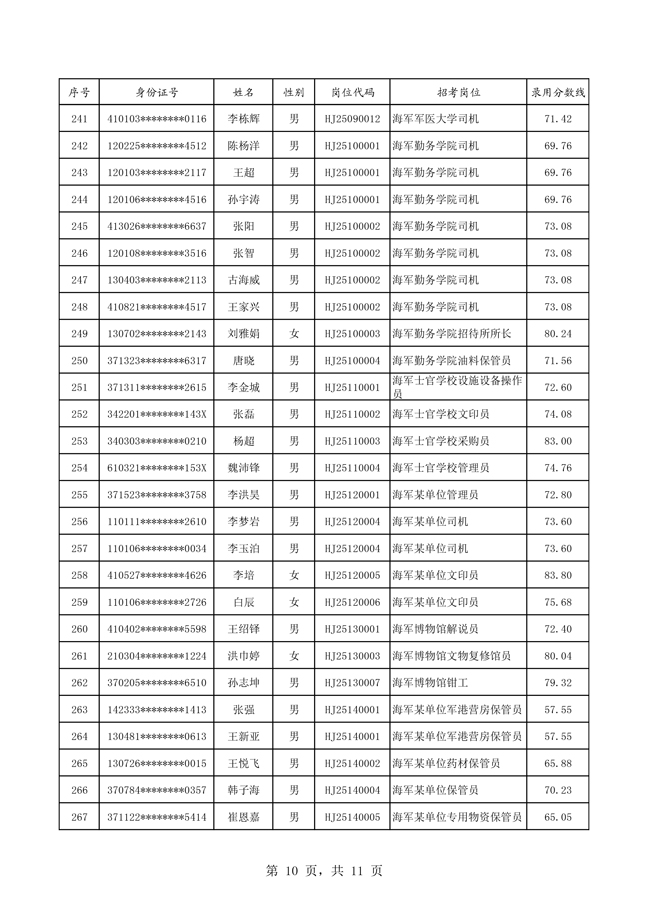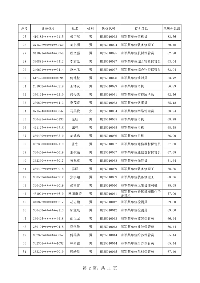 2025年武裝部文職人員擬錄用名單(含上岸分?jǐn)?shù)線) 2025-10-09