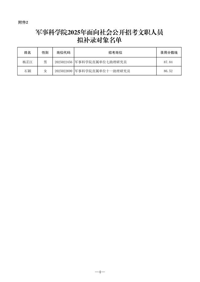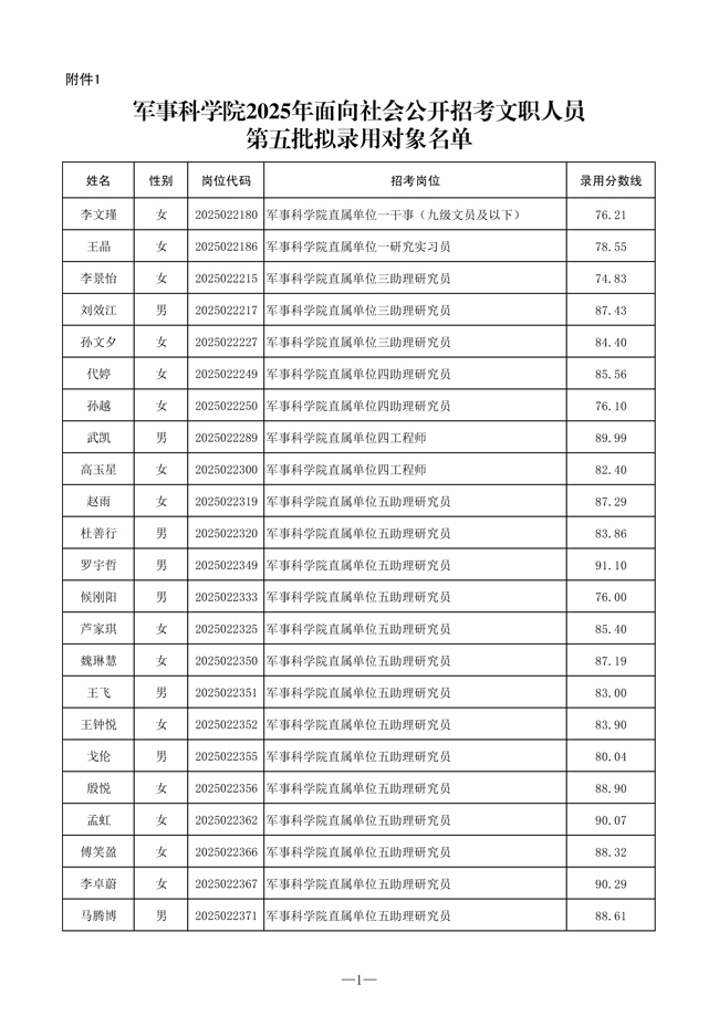 原文標(biāo)題:公示軍事科學(xué)院2025年面向社會公開招考文職人員第五批擬錄用對象、補(bǔ)錄對象名單