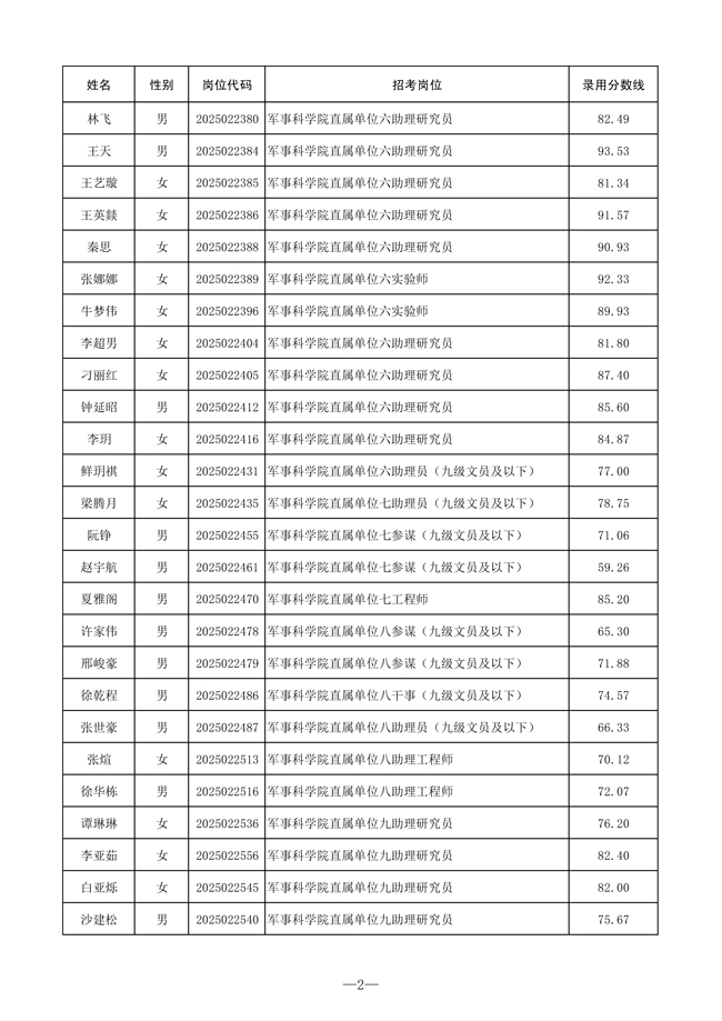 2025年武裝部文職人員擬錄用名單(含上岸分?jǐn)?shù)線) 2025-10-09