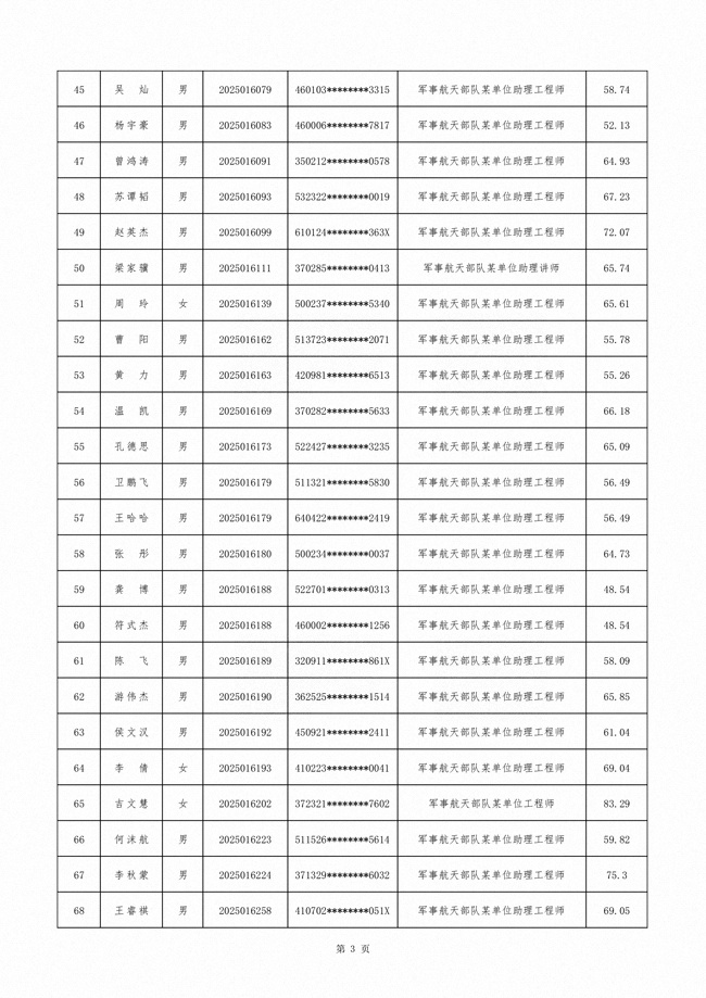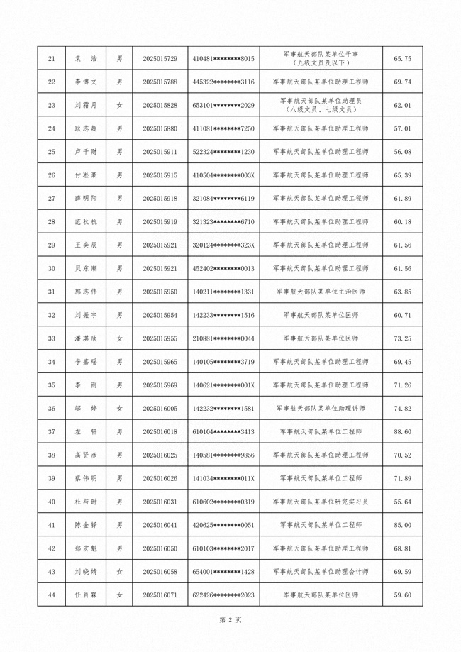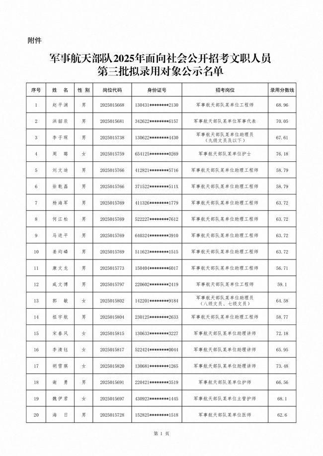 原文標題:公示軍事航天部隊2025年文職人員公開招考第三批擬錄用對象名單