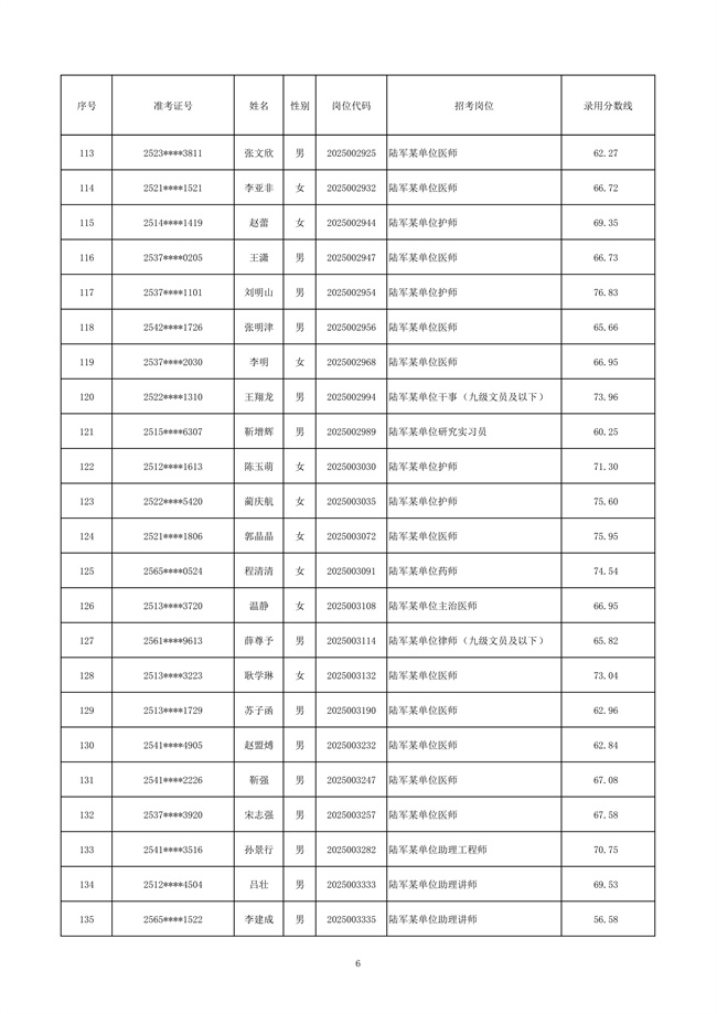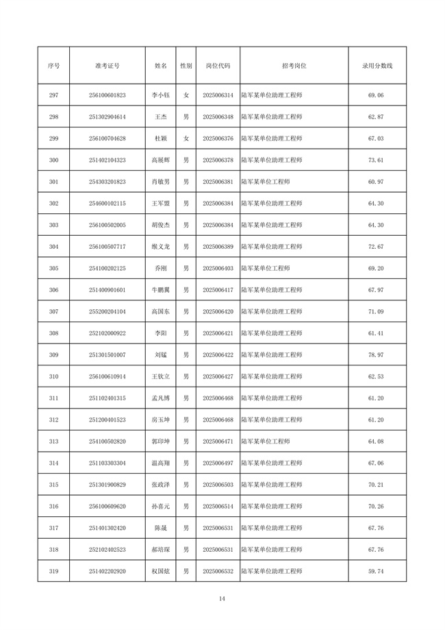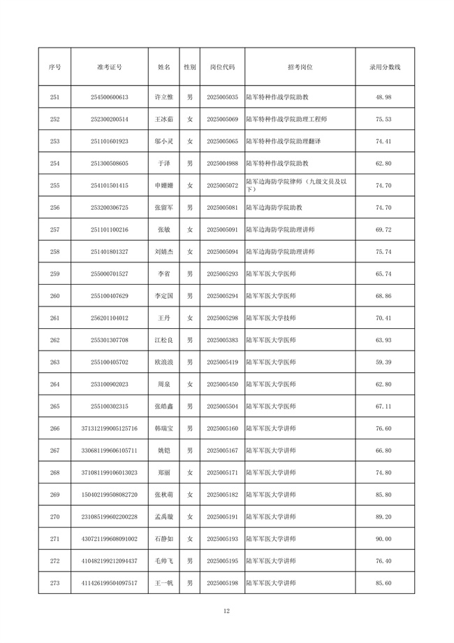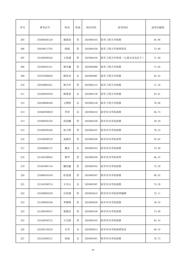 2025年武裝部文職人員擬錄用名單(含上岸分數(shù)線) 2025-10-09