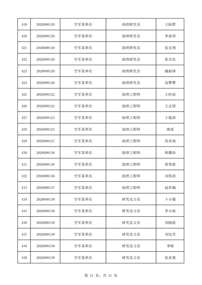 原文標(biāo)題:公布空軍2026年公開招考文職人員 第一批免筆試直接面試人員名單