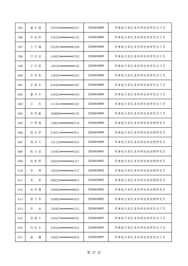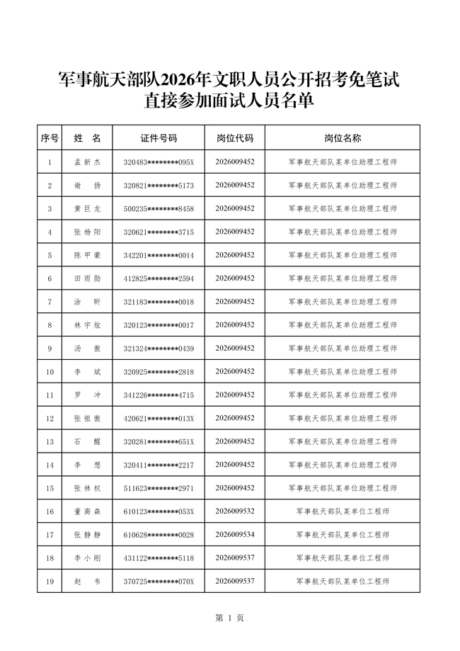 原文標(biāo)題:公布軍事航天部隊(duì)2026年文職人員 公開(kāi)招考免筆試直接參加面試人員名單