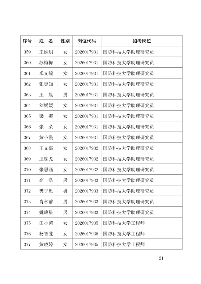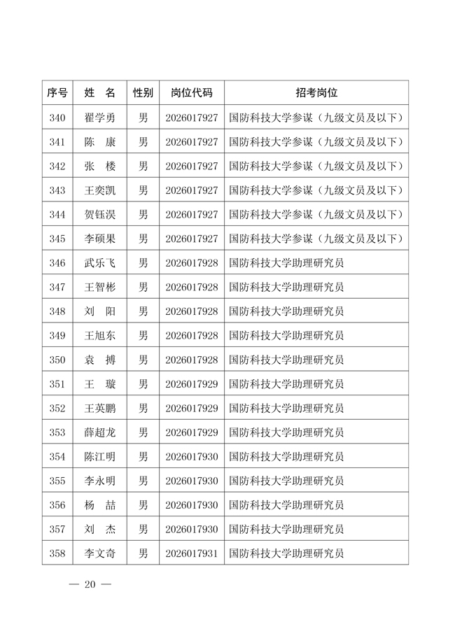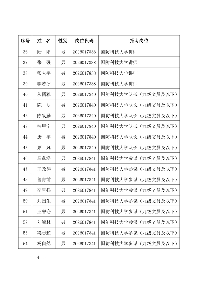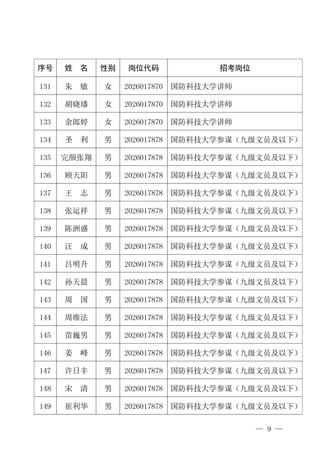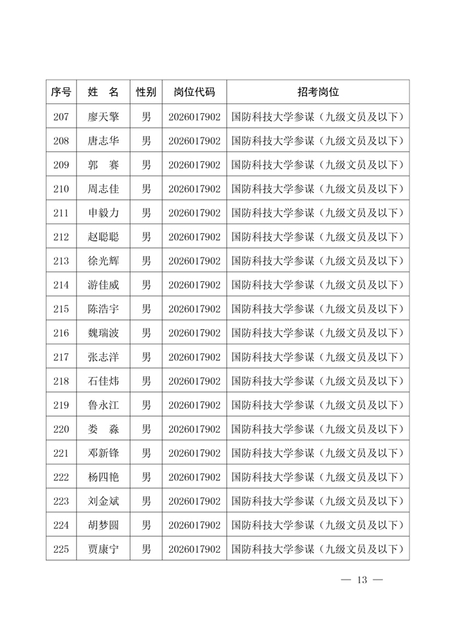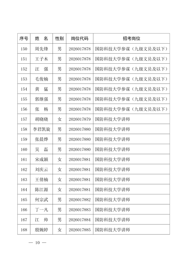 原文標題:公示國防科技大學(xué)2026年軍隊文職人員公開招考免筆試直接面試人員名單